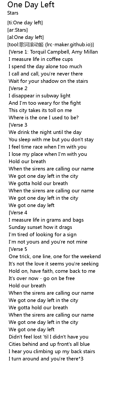 | [ti:One day left] | |