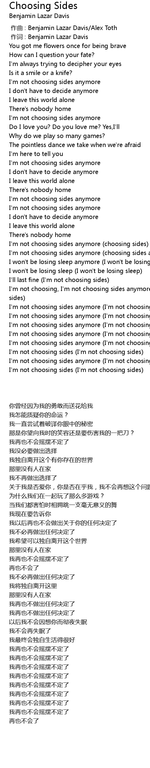 | [02:48.60] | I'm not choosing, I'm not choosing sides anymore (I'm not choosing sides) |