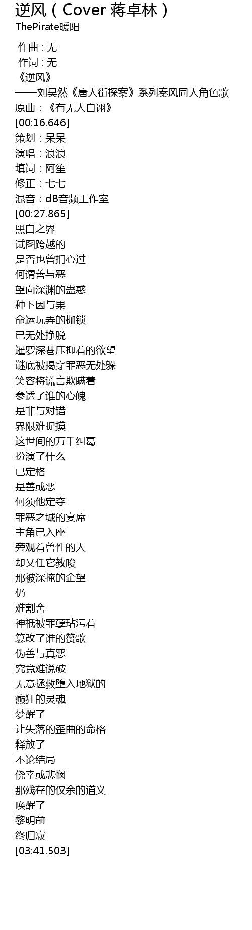 | [00:10.317] | ——刘昊然《唐人街探案》系列秦风同人角色歌 |