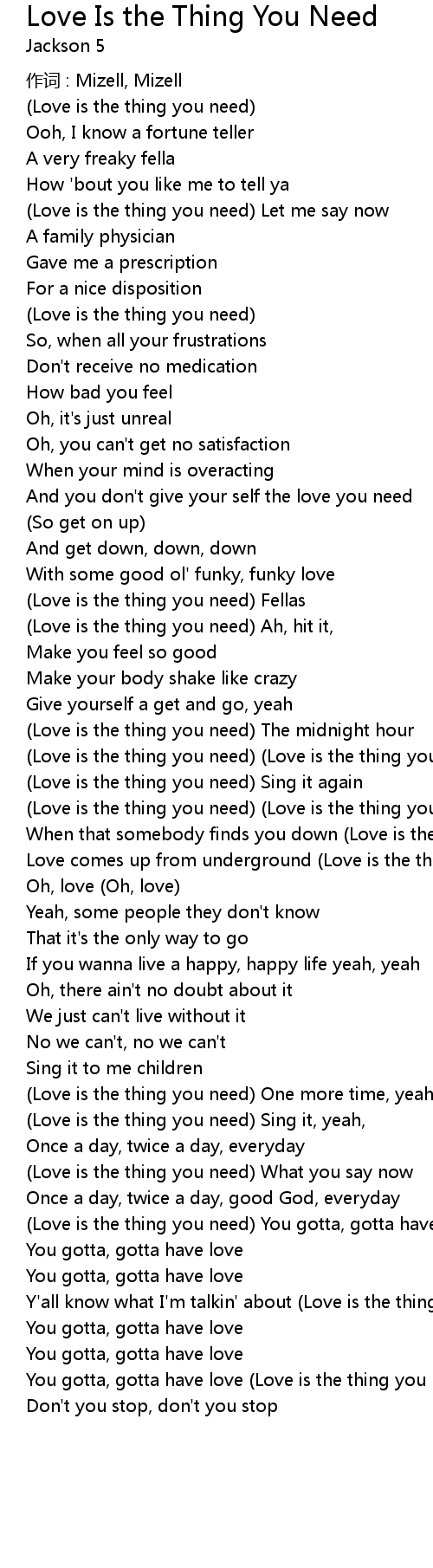 | Love is the thing you need You gotta, gotta have love | |
