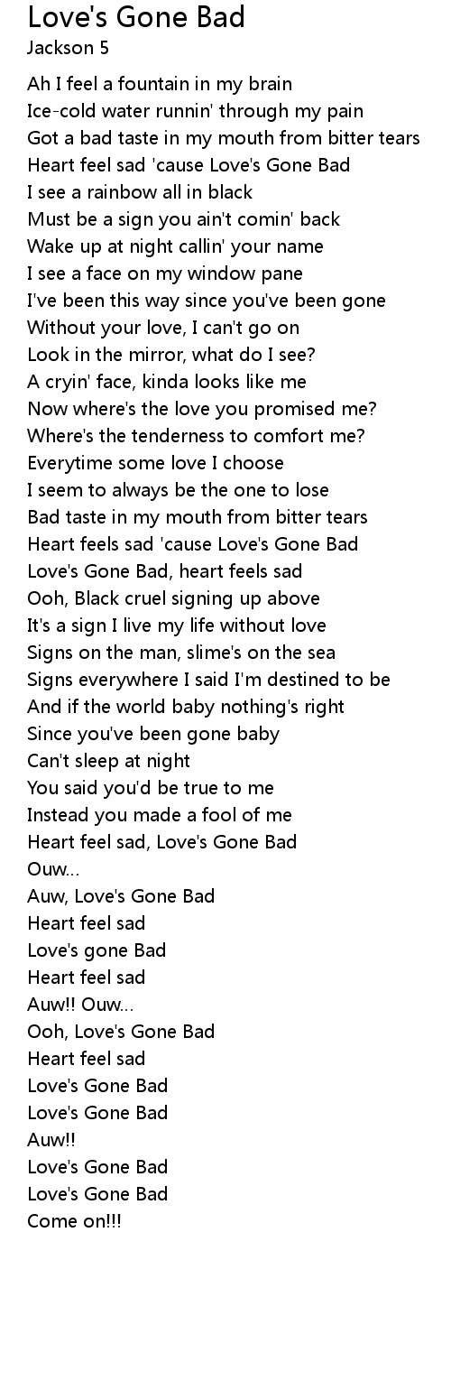 | Heart feels sad ' cause Love' s Gone Bad | |