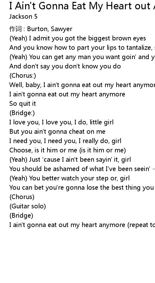 | I ain' t gonna eat out my heart anymore repeat to fade |