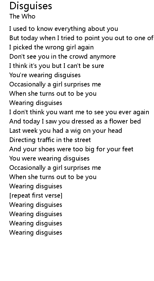 | Wearing disguises | |