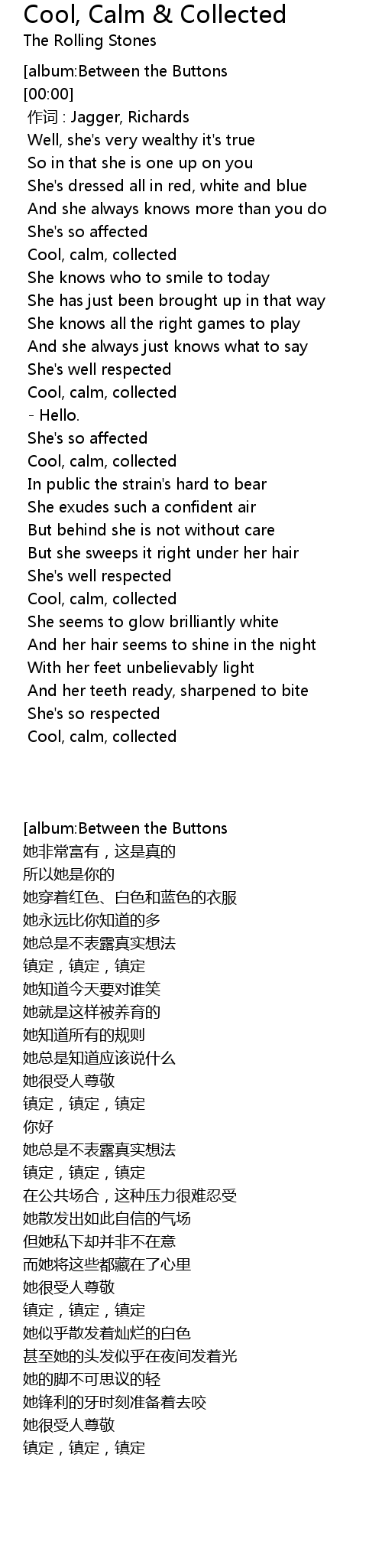 | [00:00.00] | 作词 : Jagger, Richards |