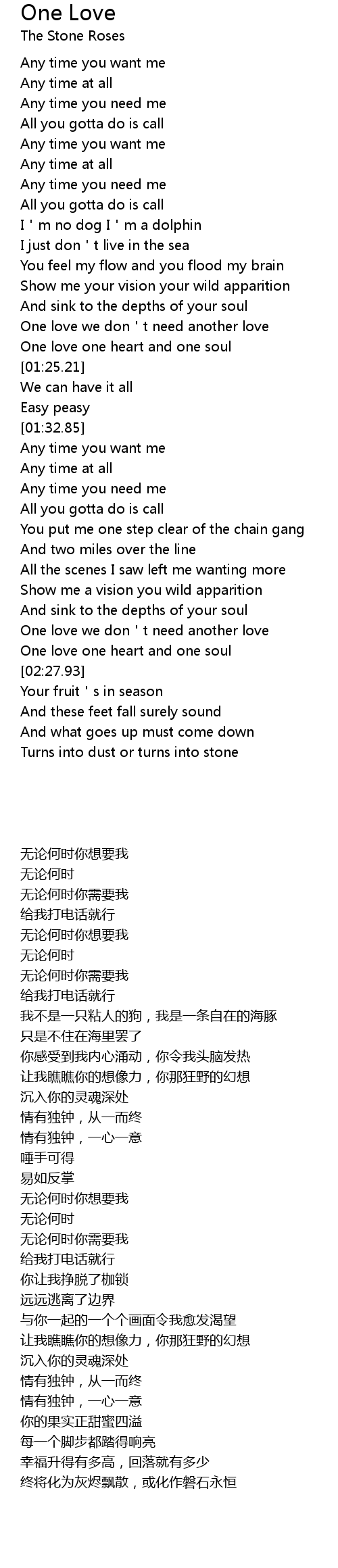 | [02:25.25] | One love one heart and one soul |