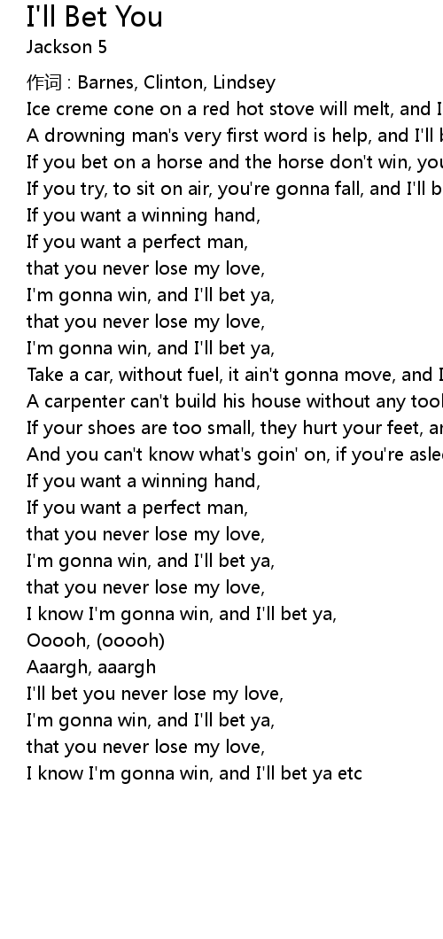 | I know I' m gonna win, and I' ll bet ya etc |