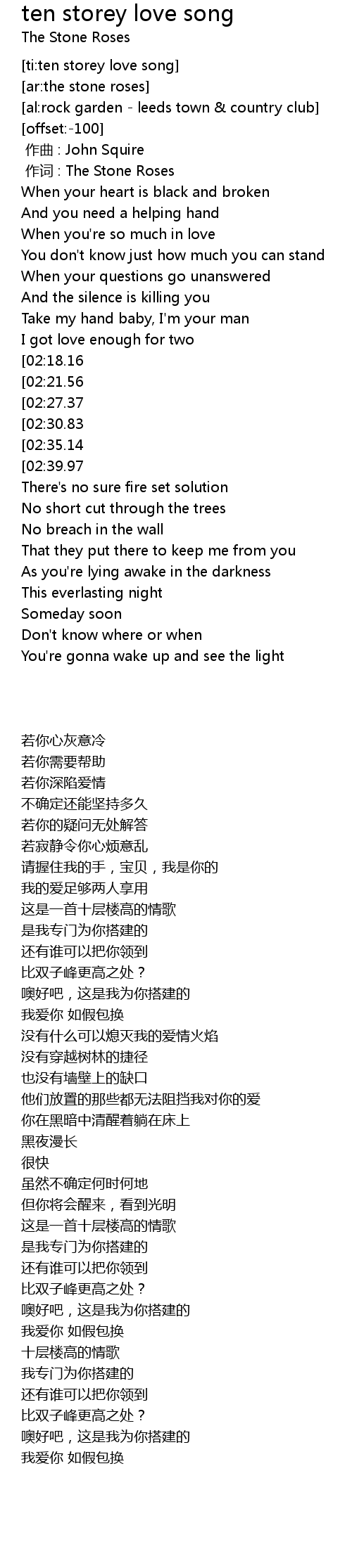 | [01:11.00][02:18.16][03:08.55] | Ten storey love song |
