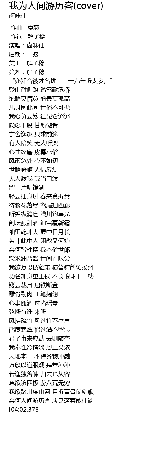 | [03:50.500] | 奈何人间游历客 应是蓬莱散仙谪 |
