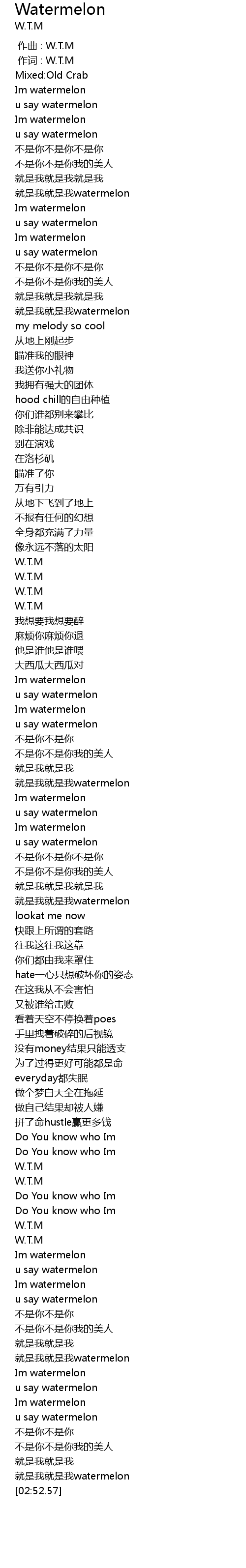 | [00:38.04] | jiù shì wǒ jiù shì wǒ watermelon |