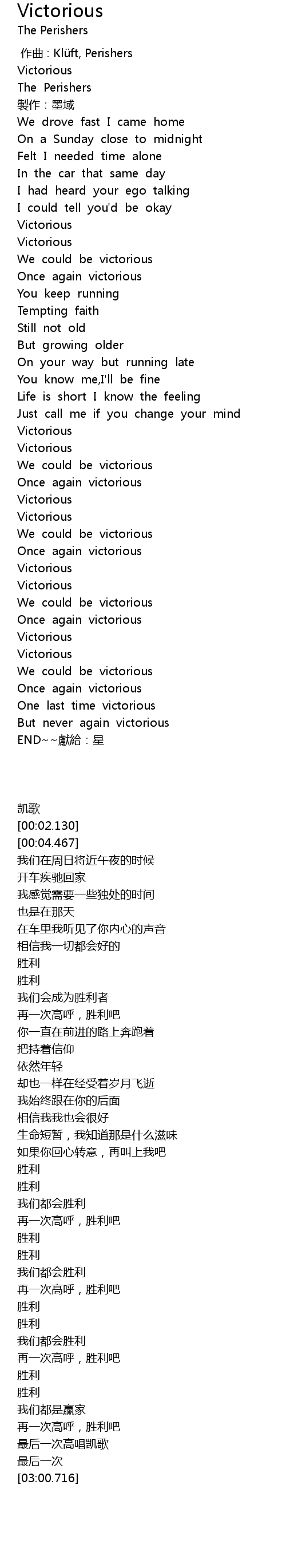 | [00:00.00] | 作曲 : Klüft, Perishers |
