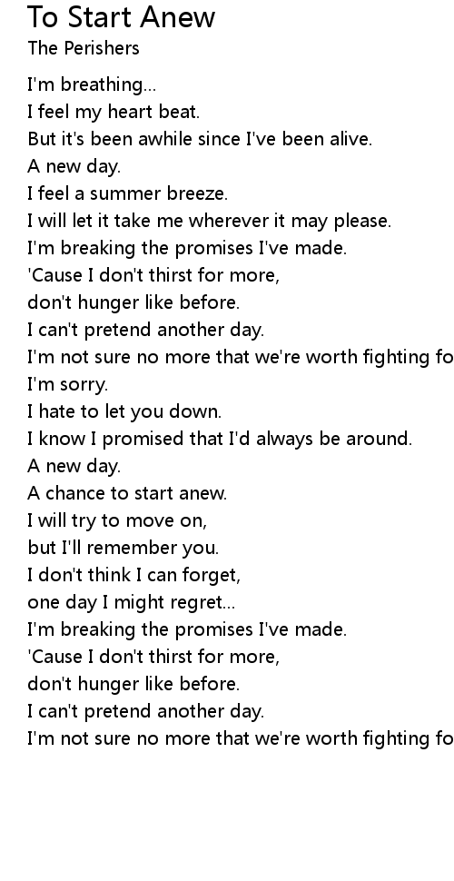 To Start Anew Lyrics