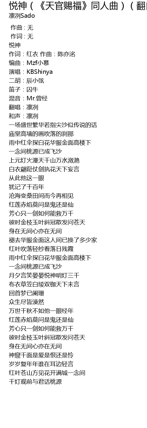 | Song | 悦神(《天官赐福》同人曲)(翻自 KBShinya) |