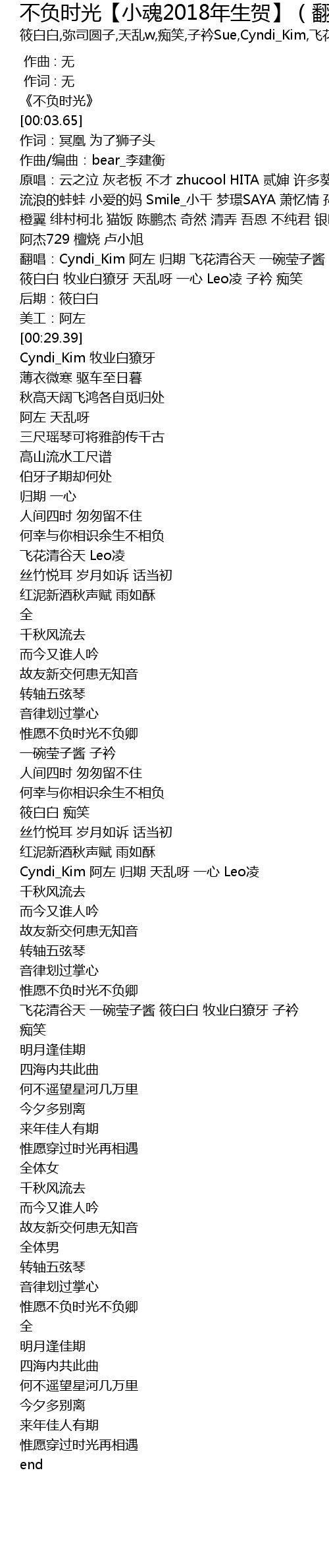 | [02:27.81] | Cyndi_Kim 阿左 归期 天乱呀 一心 Leo凌 |