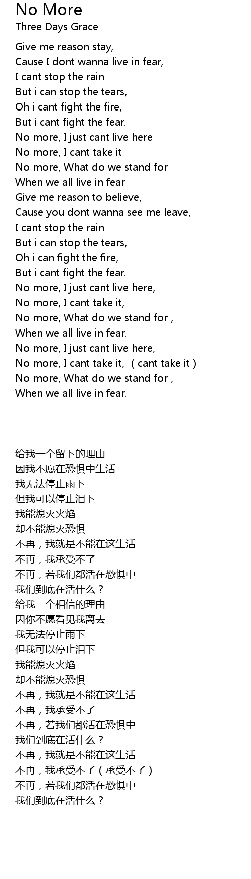 | [00:39.15] | Cause I dont wanna live in fear, |