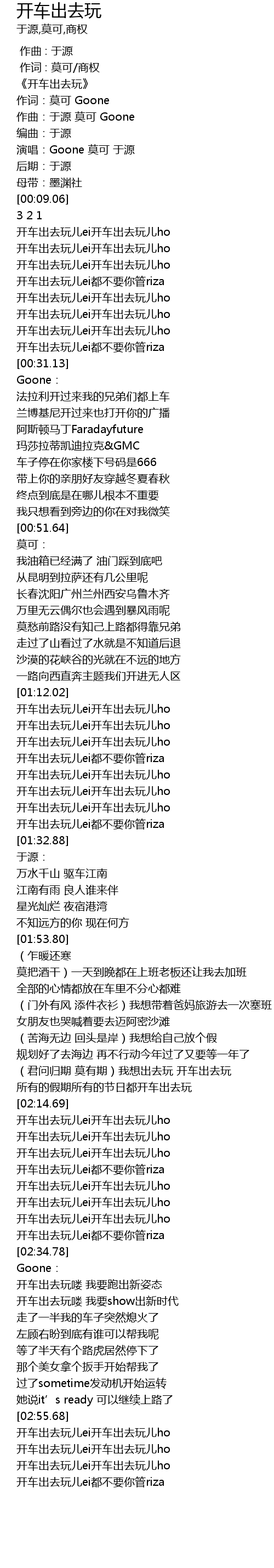 | [03:00.98] | 开车出去玩儿ei开车出去玩儿ho |