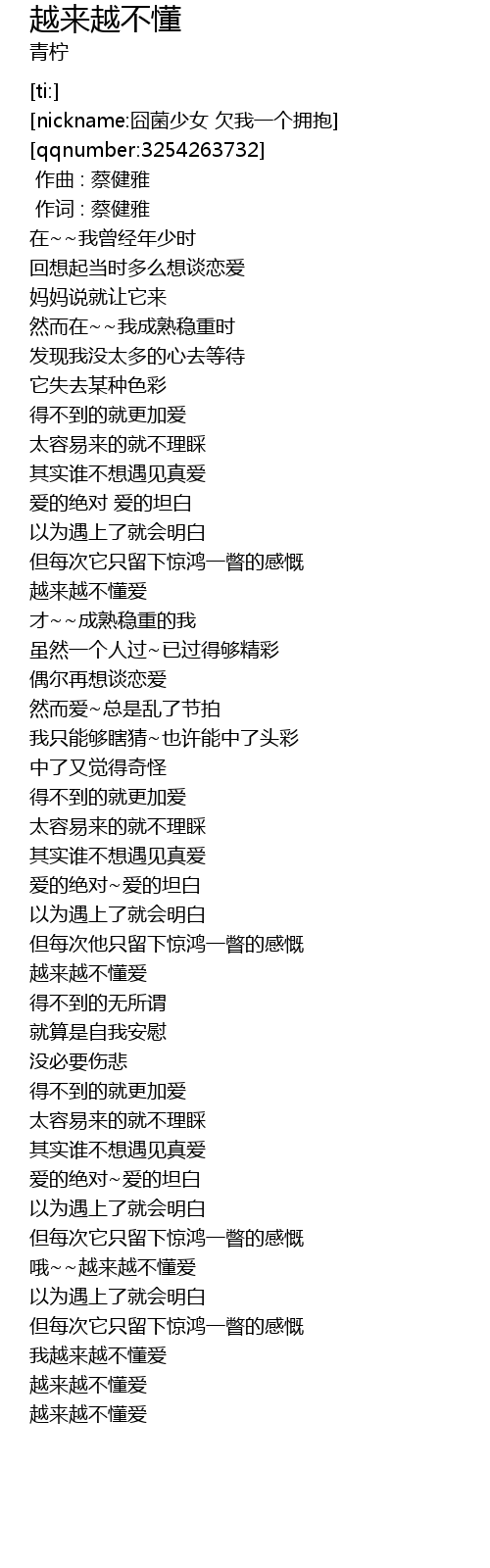 | [03:00.68] | 哦~~越来越不懂爱 |