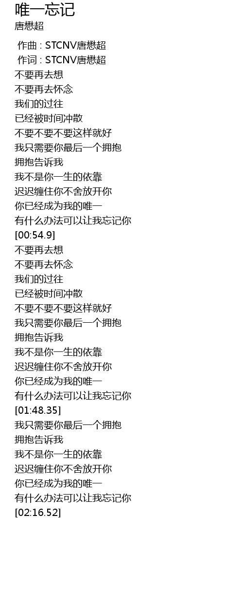 | [00:01.000] | 作词 : STCNV唐懋超 |