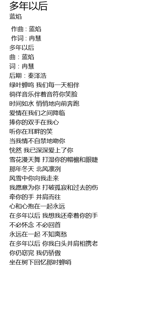 | [02:02.472] | 在多年以后 你我白头并肩相携老 |