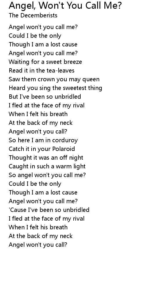 So angel won't you call me? |