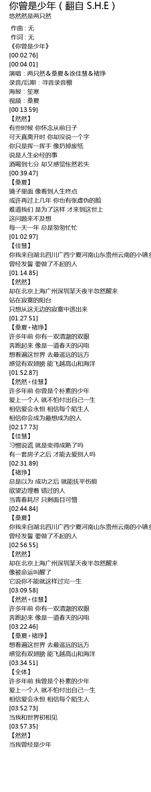 | [01:53.73] | 许多年前 你曾是个朴素的少年 |