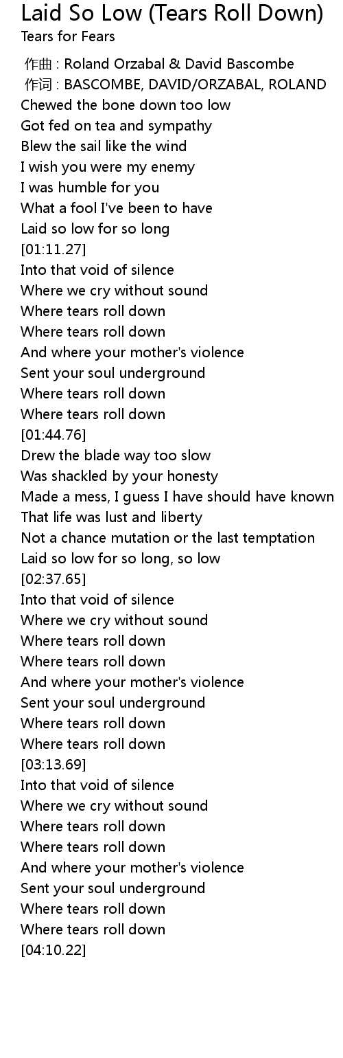 | [00:00.00] | 作曲 : Roland Orzabal & David Bascombe |