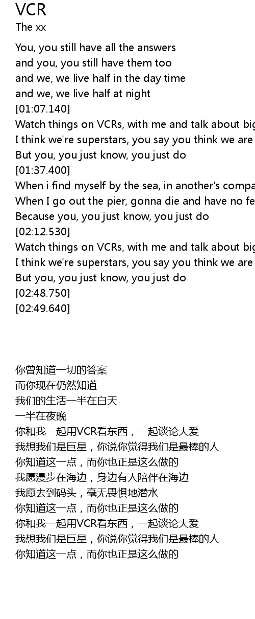 | [02:20.100] | Watch things on VCRs, with me and talk about big love |