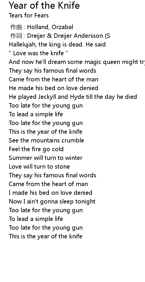 | [00:00.00] | 作曲 : Holland, Orzabal |