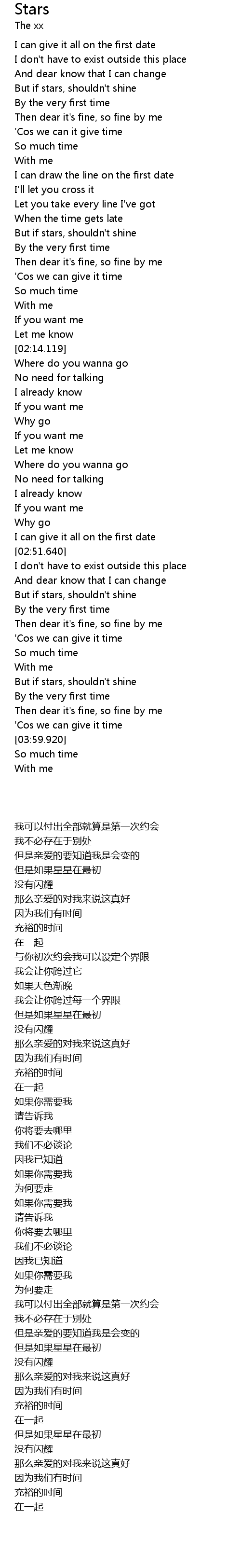 | [03:12.899] | But if stars, shouldn' t shine |