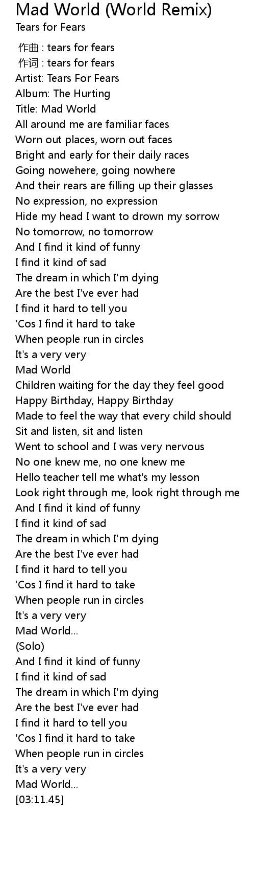 | [00:32.73] | Hide my head I want to drown my sorrow |
