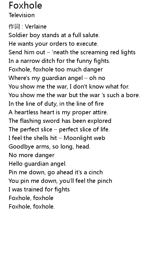 | Foxhole, foxhole. |