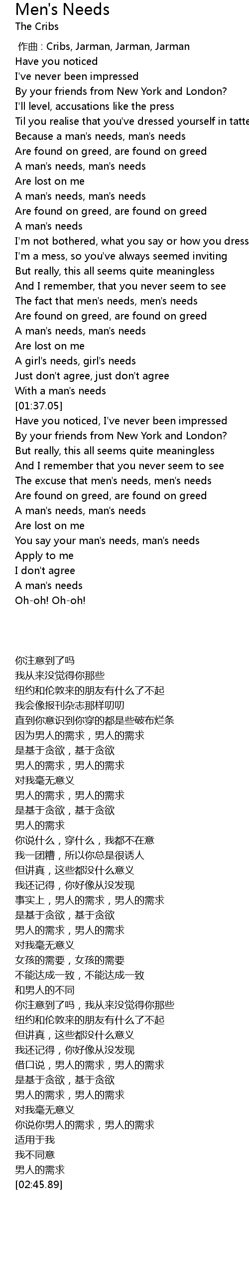 | [00:33.15] | Because a man' s needs, man' s needs |