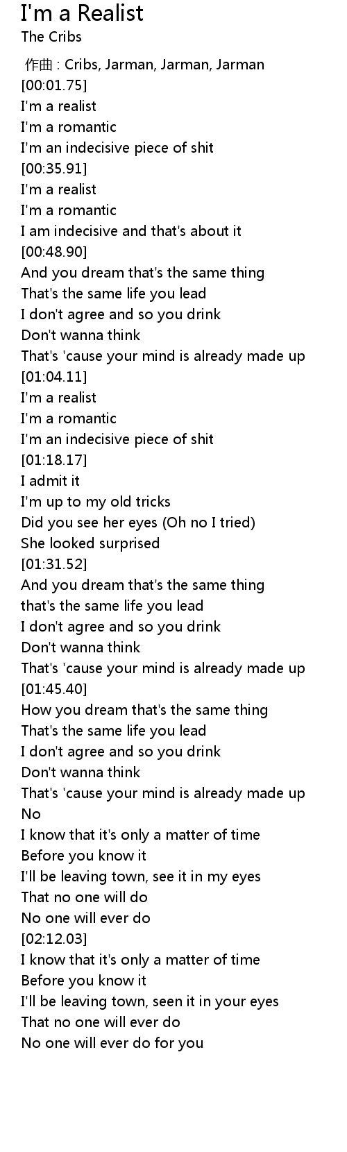 | [00:38.50] | I'm a realist |