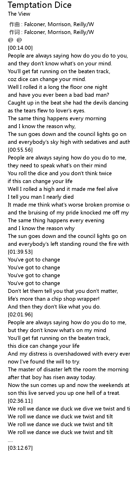 | [01:06.19] | You roll the dice and you don' t think twice |