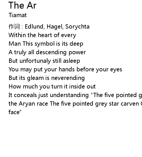 | It conceals just understanding "The five pointed grey star carven The sign of the Aryan race The five pointed grey star carven On the forehead of an evil face" |