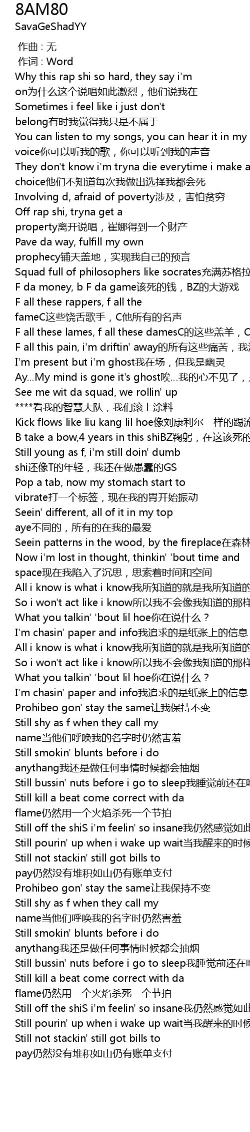 | [01:16.38] | Still young as f, i'm still doin' dumb shi还像T的年轻,我还在做愚蠢的GS |