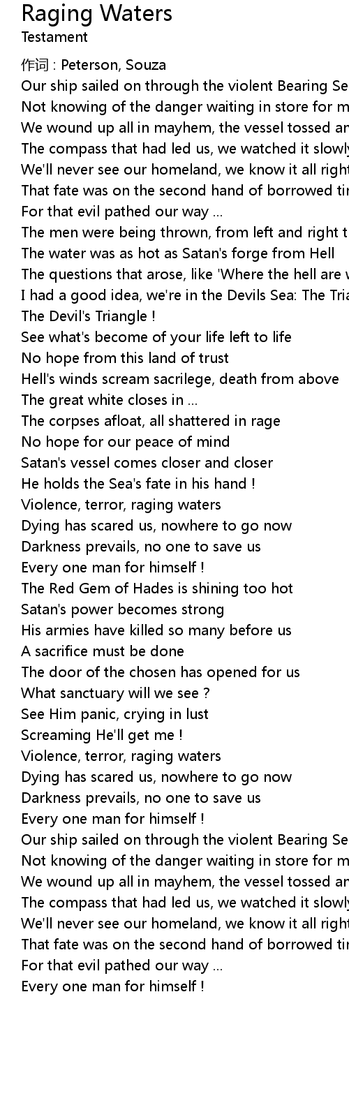 | Violence, terror, raging waters | |