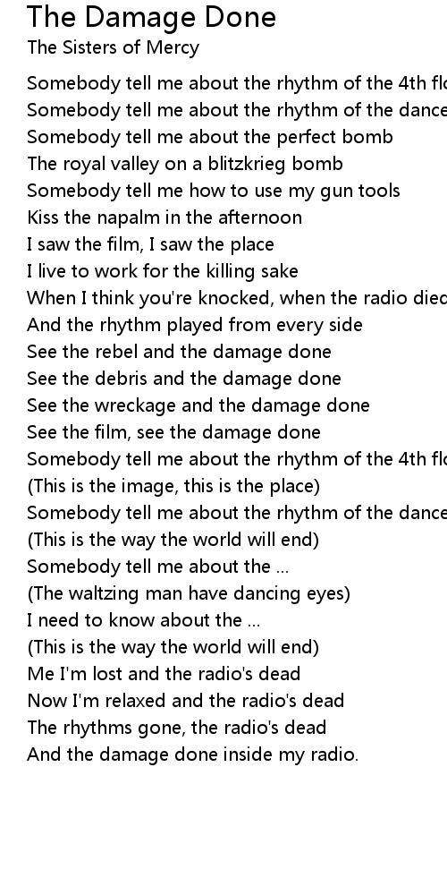 The rhythms gone, the radio's dead |