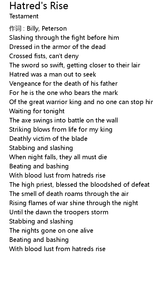 | Song | Hatred's Rise |