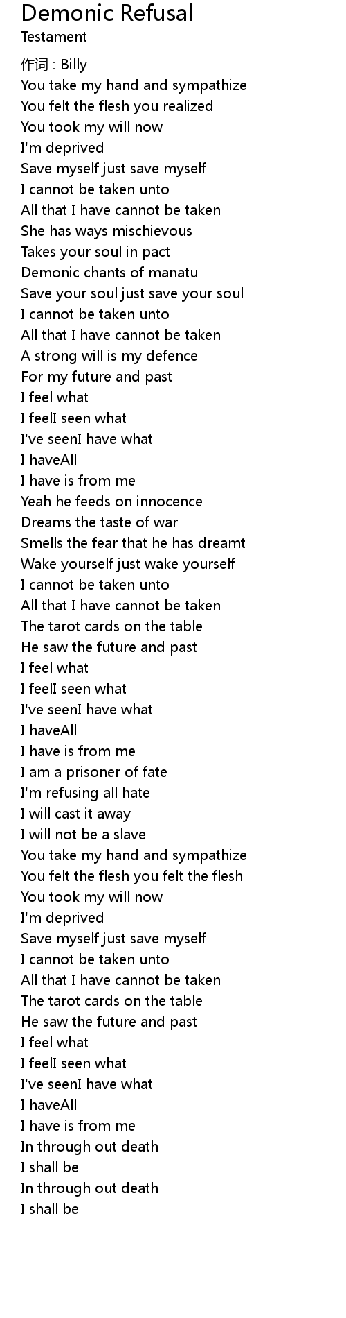 | Song | Demonic Refusal |