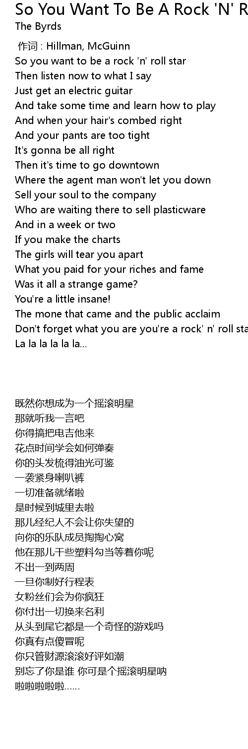 | [00:28.20] | So you want to be a rock ' n' roll star |