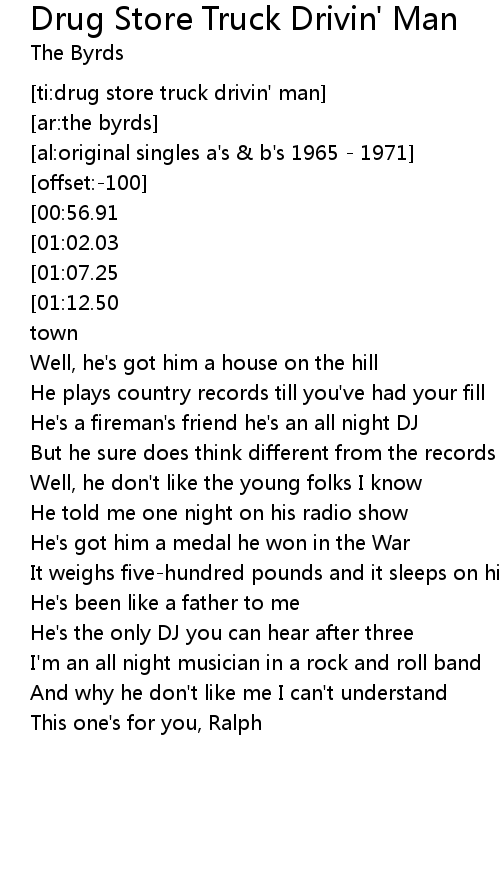 [00:12.87][00:56.91][02:04.84][02:49.29] He's a drug store truck drivin' man