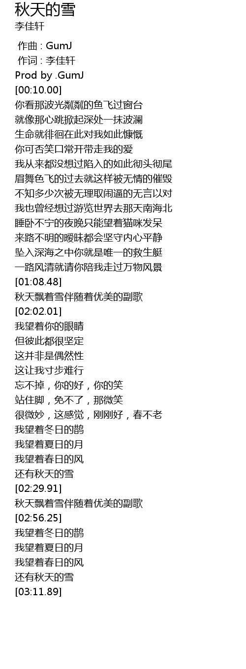 | [02:30.42] | 秋天飘着雪伴随着优美的副歌 |