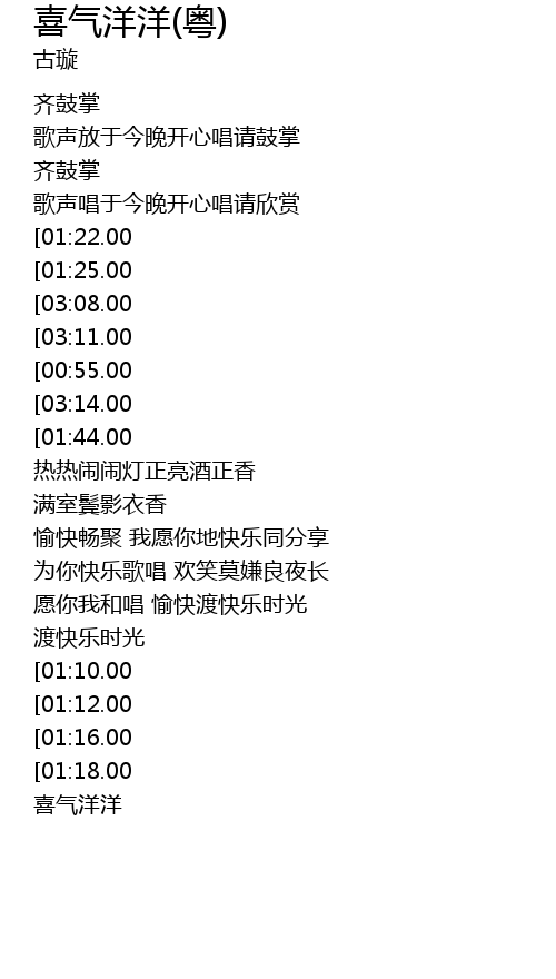 | [03:20.00][01:44.00][01:00.00] | 喜气洋洋 洋溢四方 |