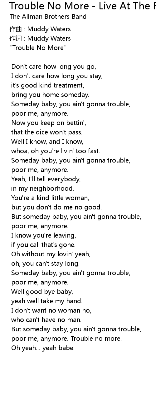 | Song | Trouble No More - Live At The Fillmore East/1971 |