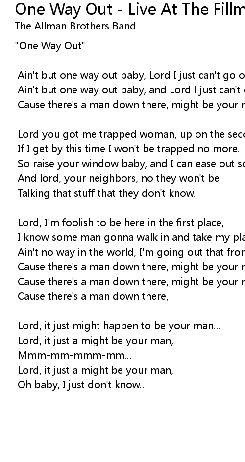 Ain't but one way out baby, and Lord I just can't go out the door. |