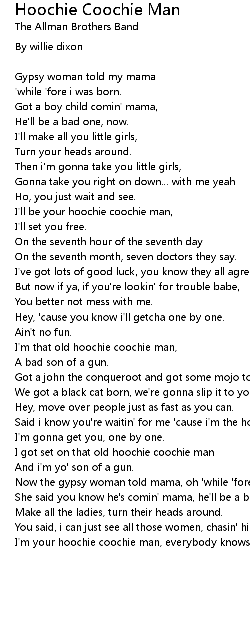 Said i know you're waitin' for me 'cause i'm the hoochie coochie man. |