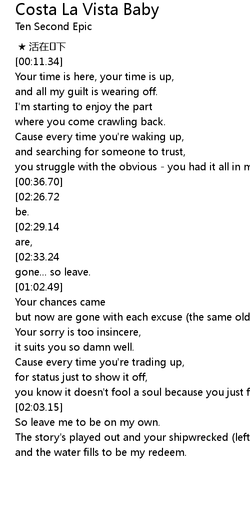 | [02:44.21][02:33.24][01:48.10][01:34.33][00:44.88] | you only want it when it' s gone... so leave. |