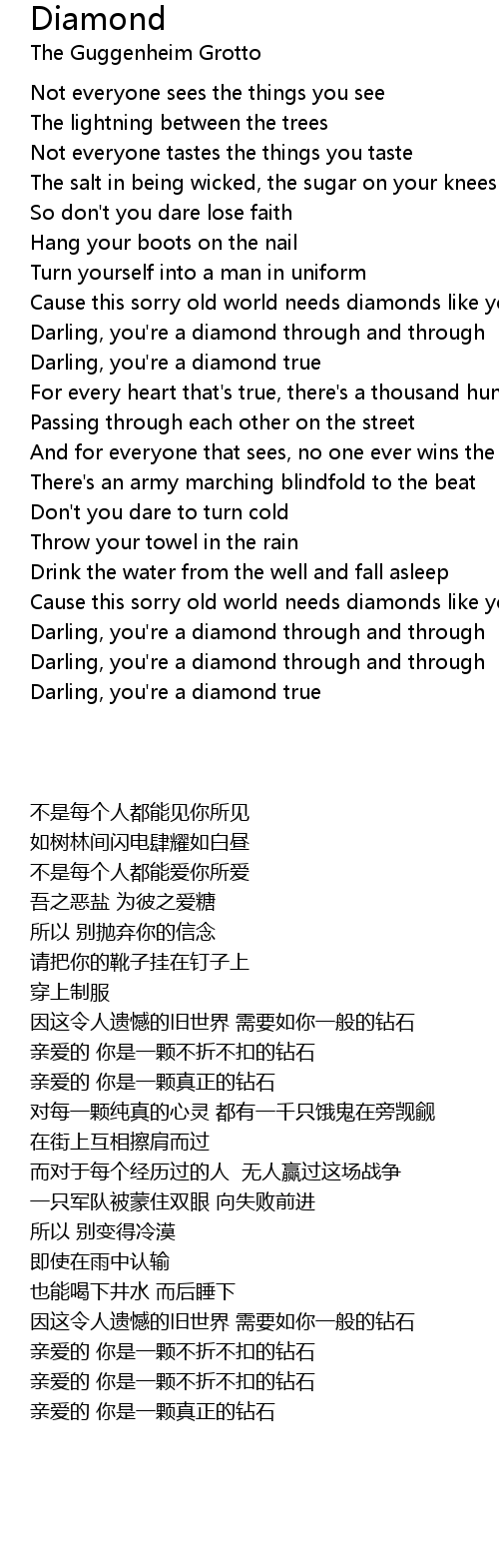 Darling, you're a diamond through and through |