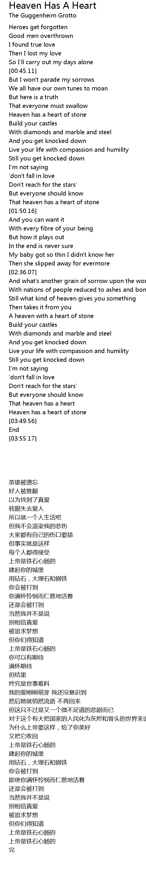 Heaven has a heart of stone |