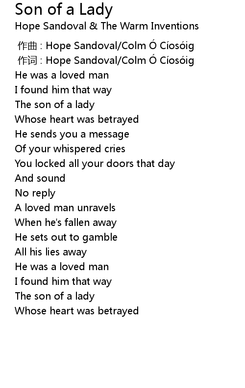 | [00:00.000] | zuò qǔ : Hope Sandoval Colm Ó Cí osó ig |